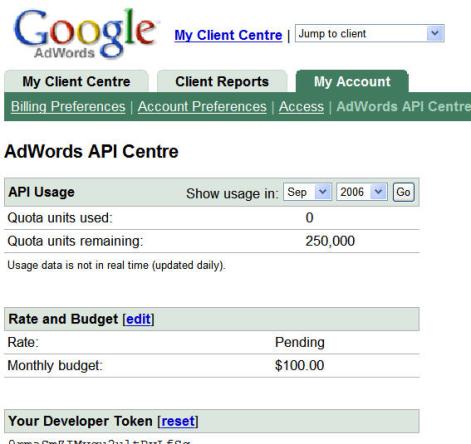 Click on it to see your current programme information, such as your quota and you'll also find your developer token number there